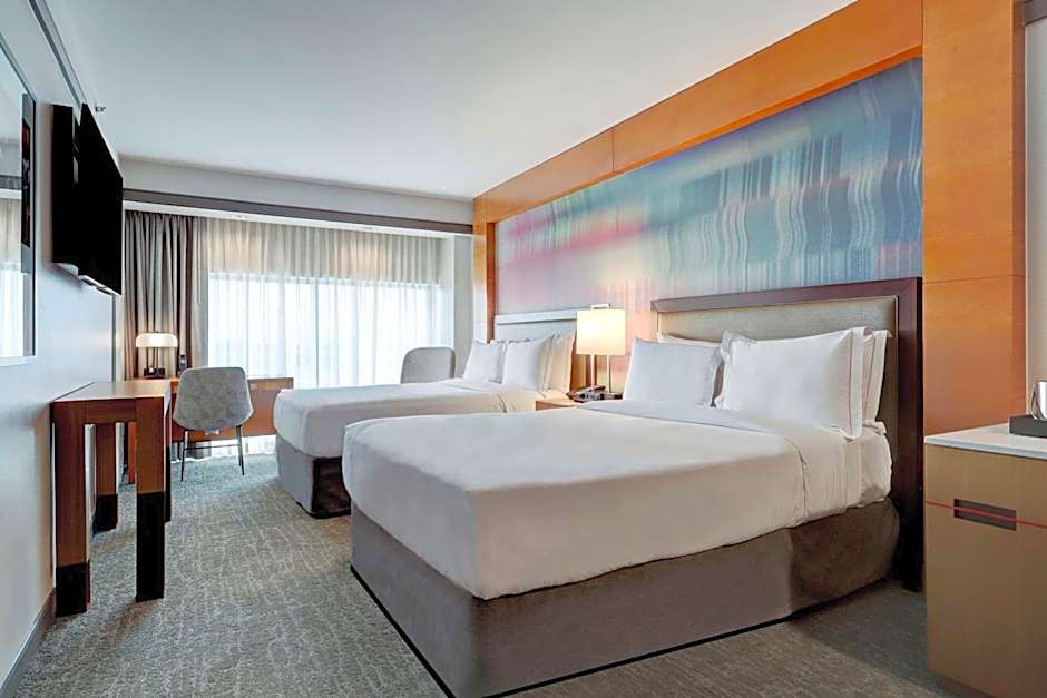 City views, sofa bed, 32-inch LCD TV, WiFi, Cuisinart coffeemaker Take in views of the city from the floor-to-ceiling windows of this comfortable guest room featuring 2 queen-sized Hilton Serenity beds and a separate sofa bed. Savor a delicious freshly brewed coffee from the Cuisinart coffeemaker, 32-inch LCD TV or catch up on your emails with complimentary WiFi access.